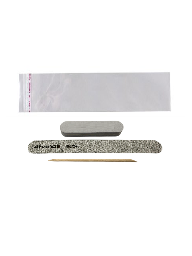 Набор для маникюра 4hands (пилка прямая 180/240 18 см, баф овал 100/180 9х2 см, а/п) БОПП пакет