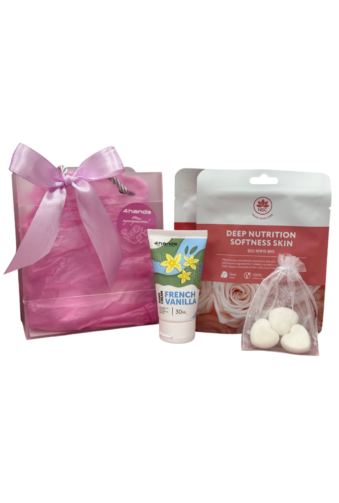 Подарочный набор 4hands №1 в сумке (Арома саше, маска для лица, крем для рук 30 мл)